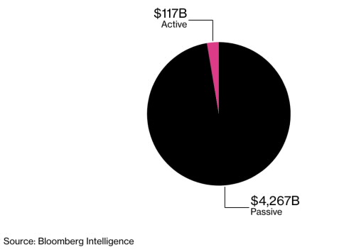 一直以来,美国主动基金指数比例一直无法超越被动基金指数。由于他们的投资组合通常更集中于管理层认为可能跑赢大盘的证券,因此管理费用高昂,而且参与者以机构投资者为主。在4万亿美元的ETF行业中,美国主动管理ETF总数量有大约400只,所占的份额不到3%。