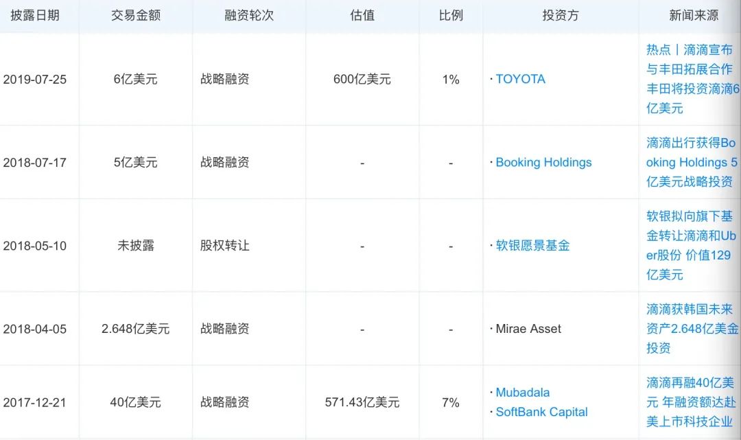 成立于2012年的滴滴,过往共完成十余轮融资,总额超过200亿美元,涉及数十个投资机构和个人。