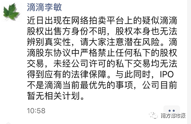 滴滴副总裁李敏朋友圈(来源:南方都市报)
