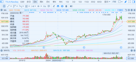 今年以来,特斯拉股价一路狂飙猛涨,在上述两天的连跌之前,年内累计涨幅已经达到280%。