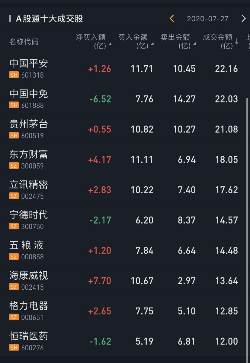 净流入方面,海康威视、东方财富、立讯精密分别获净买入7.70亿元、4.17亿元、2.83亿元。