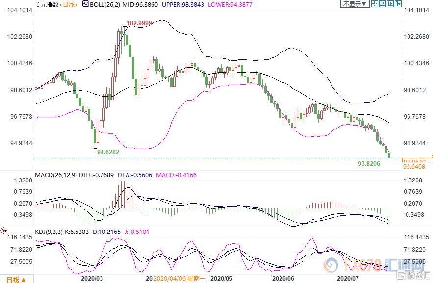 美元的跌势正在加剧,基金经理们开始调整头寸,以防美元在夏季持续走弱。美元指数周一跌至接近18个月低点93.82,延续了四周以来的下跌走势。