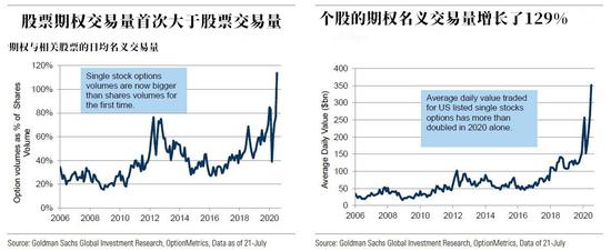 高盛发现市场出现了历史性的反转,股票期权交易量首次超过了普通股本身。