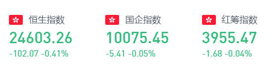 恒指周一早盘高开0.83%,全天呈单边下跌走势。截至收盘,恒生指数跌0.41%,报24603.26点,全日成交额达1256.77亿。国企指数跌0.05%,报10075.45点,红筹指数跌0.04%,报3955.47点。值得一提的是,“港版纳指”恒生科技指数挂牌首日收跌1.28%。