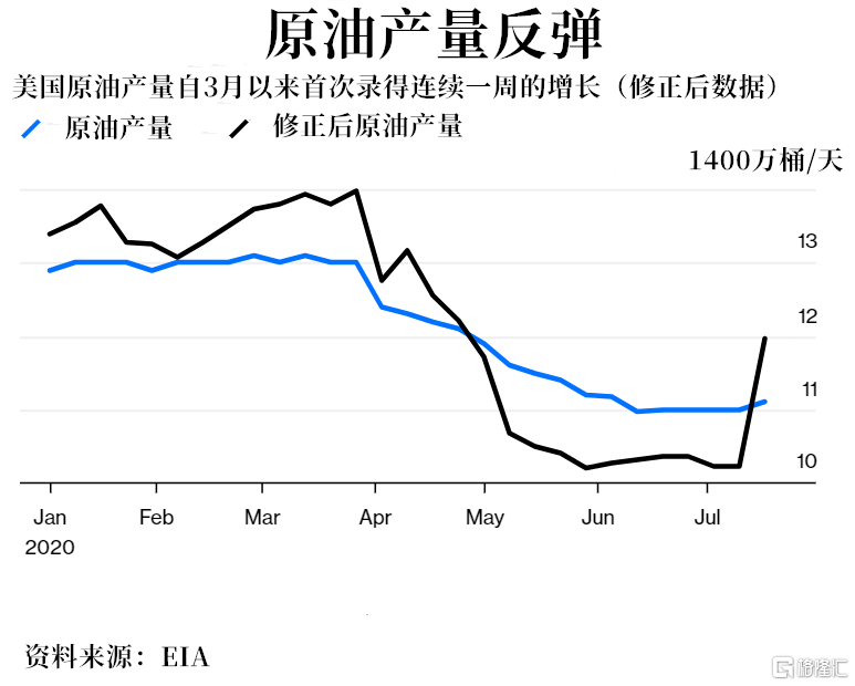 但沙特不是原油供应增加的唯一来源,北美的原油产量也已从疫情最严重期间的水平复苏。据EIA上周的数据显示,排除热带风暴Cristobal的影响后,美国原油产量自3月以来首次录得增长。(该风暴曾在6月份横扫墨西哥湾,导致日产量短暂减少50多万桶。)