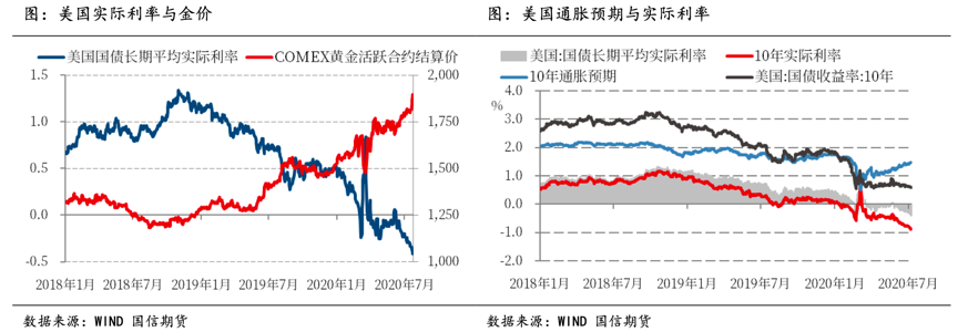 2020年7月,美国通胀预期持续上升,10年期美债名义利率进一步下行,实际利率开始走向负利率时代。