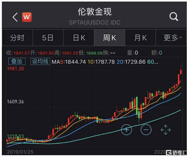 贵金属是最近涨幅最为疯狂的品种,仅仅14个交易日,国际现货黄金价格从1800美元/盎司飙升,突破了在2011年创下的历史最高价。国际金价已连续七周上涨,这也是自2011年以来的最长连涨,今年迄今已涨超25%。全球黄金ETF持仓量在上周创下连续18周增长,仓位已创历史记录。