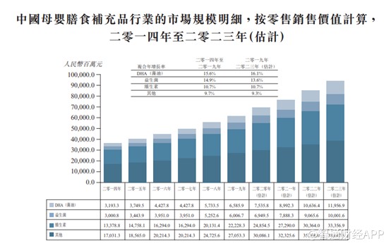 国内母婴膳食补充品发展迅速,可细分为维生素、益生菌、DHA等等。智通财经观察到,2014年至2019年按照零售额计算,母婴DHA(藻油)分部在中国所有母婴膳食补充品中增速最快,年复合增长15.6%,至2019年达到65.9亿元。