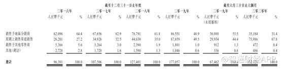2016年至2020年上半年,其地区分销收入占比分别为64.4%、62.9%、61.8%、48.96%及31.4%,而网上销售收入占比则为27.2%、32.5%、35%、49.5%及67.8%,往续期间网上销售占比逐年提升,在今年上半年网上销售占比首次超过地区分销,销售收入同比增长达到154%,而地区分销收入下滑2.5%。