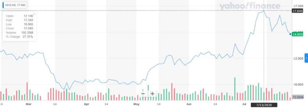 3月以来,很多人觉得生活艰难的小米,股价从年内低点9.53收盘价一路上扬至高点17.04,四个月内高达78.8%,小米的股价划出一条靓丽的增长曲线。