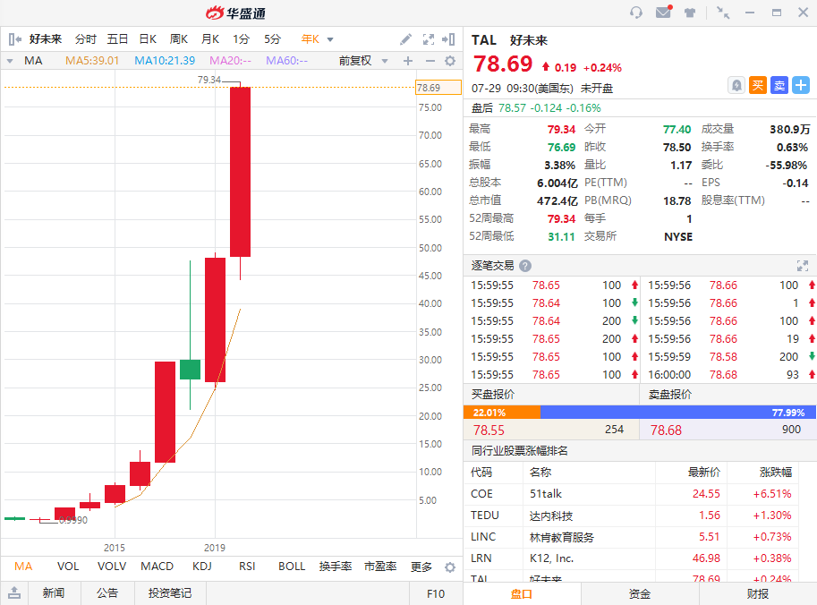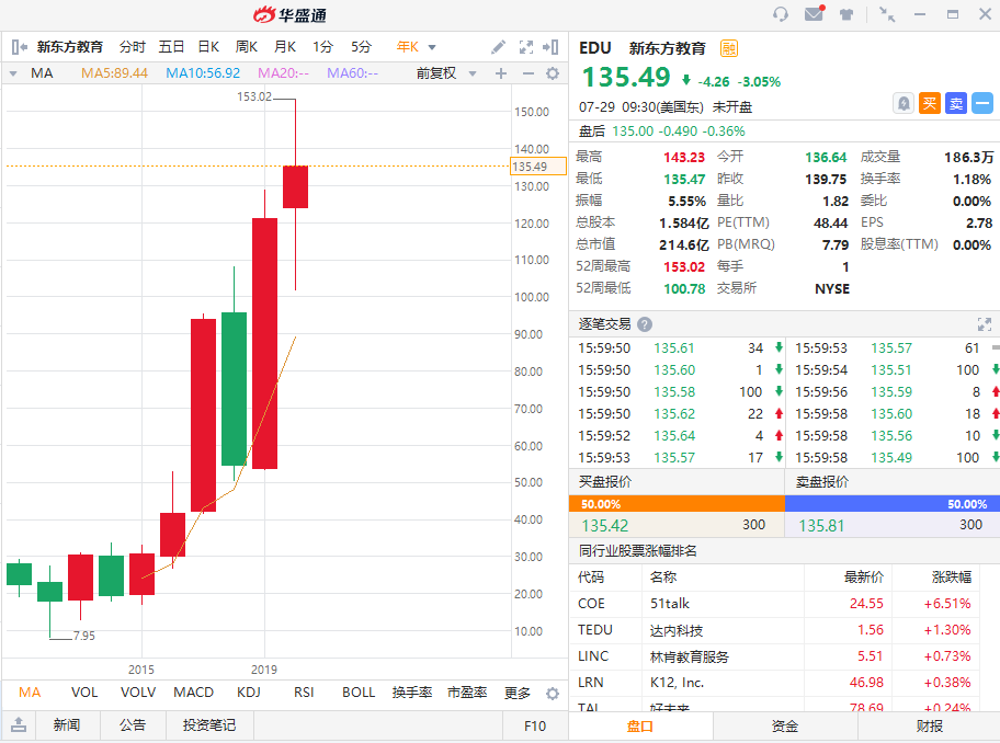疫情来势汹汹,但在如此恶劣的情形下,新东方可谓经受住了挑战,并且回看历史,新东方与好未来都是不折不扣的大牛股,新东方自11年最低点7.95美元至今年最高价153.02美元,9年涨幅接近20倍。同行好未来的涨幅更是让人目瞪口呆,从十年前的美股1-2美元,涨至如今的最高79.34美元,10年间股价涨幅接近40倍。