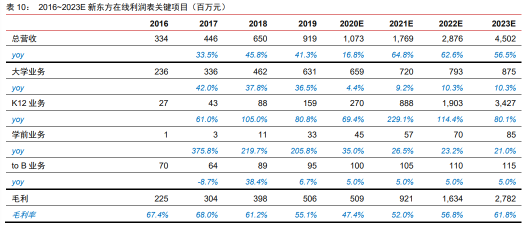 新东方在线也牢牢抓住疫情带来的机会,K12以及学前业务近年保持超高速的增长,2018年K12的增长率为105%,2019年为80.8%,学前业务的增长更为迅猛,营收每年翻2倍!好未来的在线业务也同样突飞猛进,这些真正的成长股,在疫情之后,似乎找到了下一个高速增长的引擎。