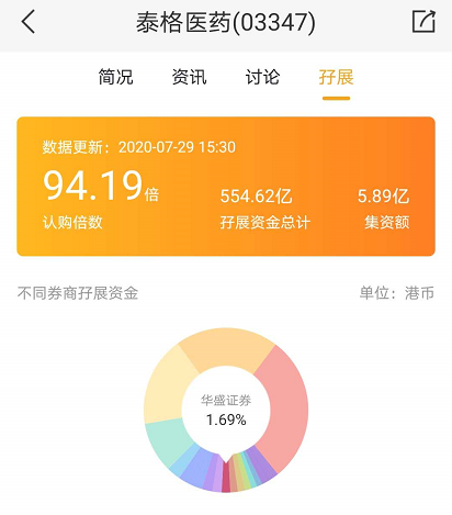华盛资讯7月29日讯,国内CRO龙头泰格医药(03347.HK)昨起招股,市场反映理想,截至今日15:40,辉立、华盛等券商为其借出逾554.62亿孖展资金,相当于公开发售超额认购94.19倍。