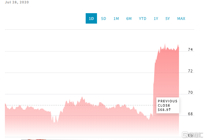 7月28日,AMD发布了2020年第二季度财报,单季营收19.3亿美元,同比增长26%,股价大幅攀升,盘后上涨了10.34%,创下股价74.6美元的历史新高点。而在此前几天,英特尔也刚刚发布了2020年第二季度财报,单季营收197亿美元,同比增长20%。在此之后,英特尔的股价却一路连跌三天,28日已经跌至48.75美元。两者的股价表现可谓“冰火两重天”。
