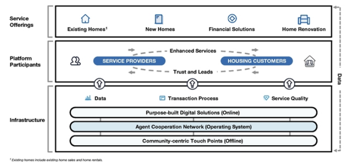 贝壳通过运营线上线下平台,业务覆盖新房销售、房屋租赁、房屋翻新、房地产金融解决方案等。
