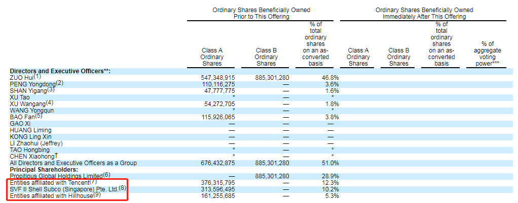 IPO前,腾讯持股贝壳12.3%,为最大外部股东;同时软银、高瓴资本、红杉皆有对其投资。