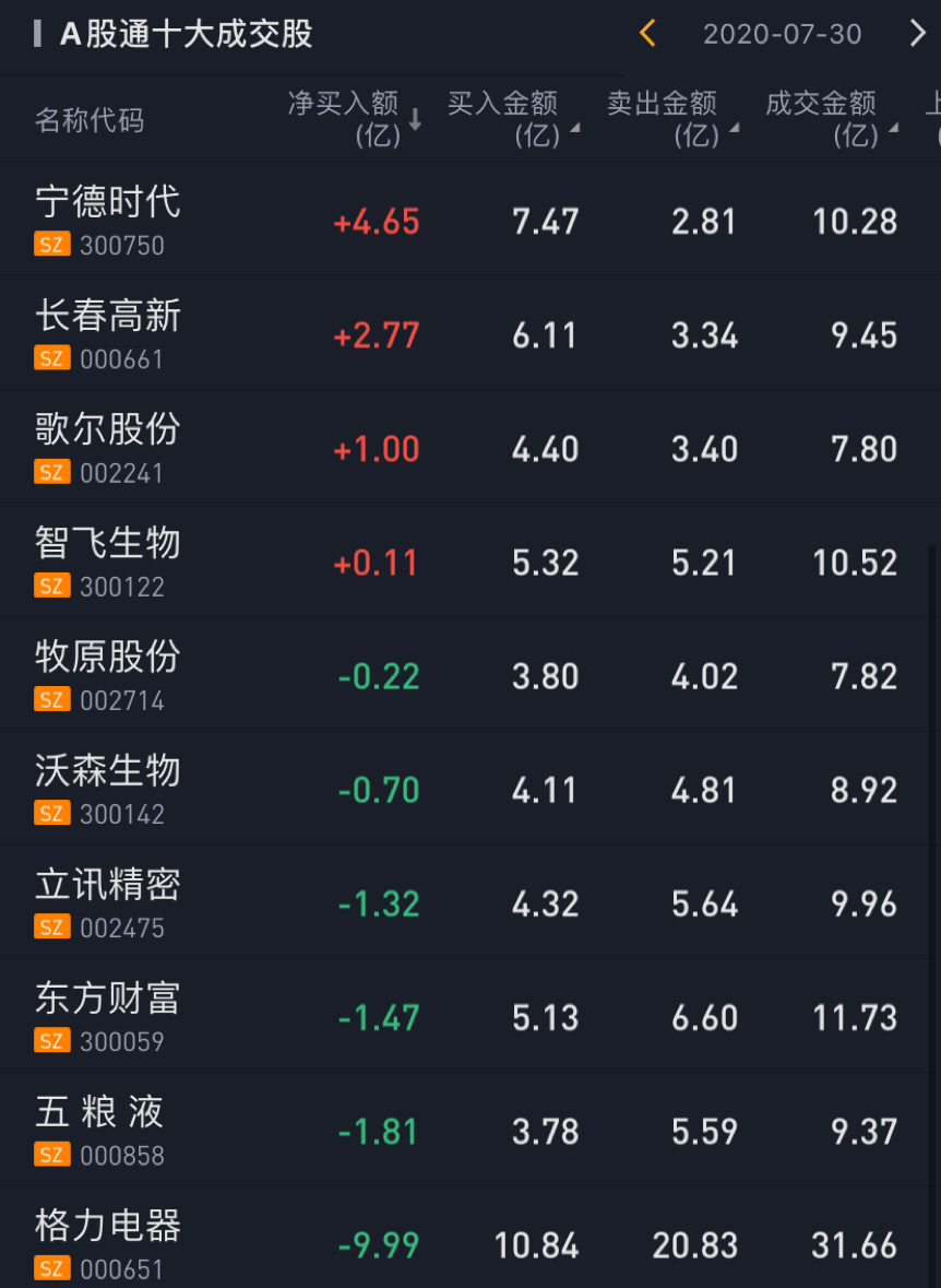 北上资金今日整体流出,其中港资净买入宁德时代4.65亿元,净买入长春高新2.77亿元,净买入歌尔股份1亿元;净卖出格力电器9.99亿元,净卖出五粮液1.81亿元。
