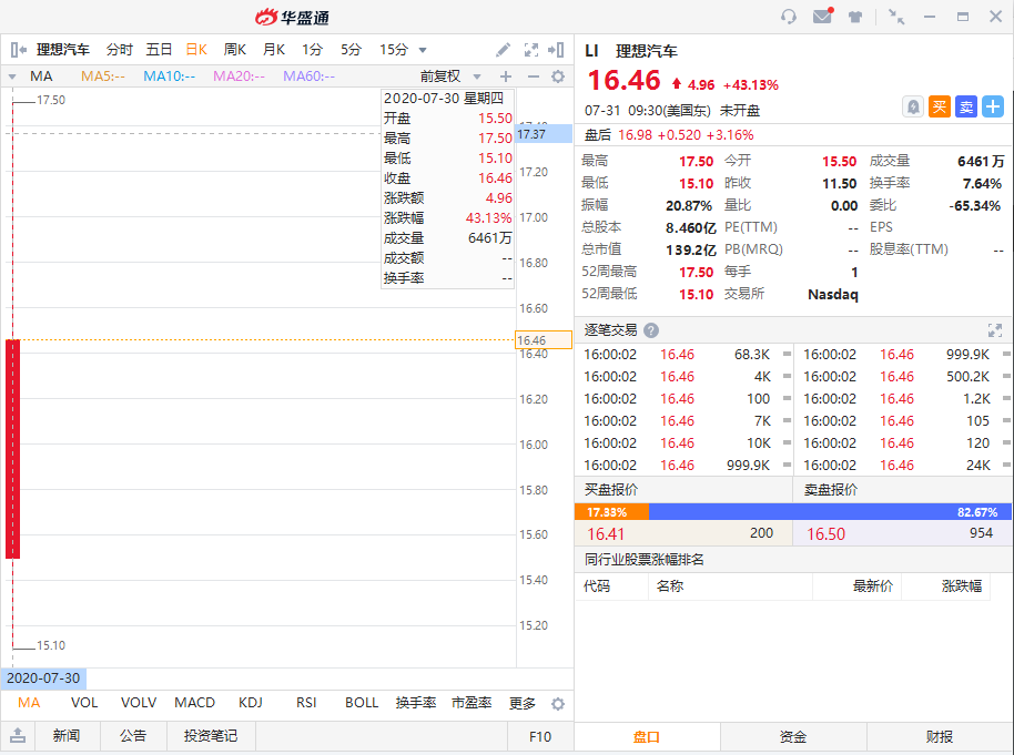 7月30日晚上,理想汽车正式在美股纳斯达克上市,发行价11.5美元,首日收盘价16.46美元,涨幅超过43%,收盘时市值停在了139.17亿美元,作为第二家上市的中国电动汽车公司,理想汽车与首家上市的蔚来汽车市值目前仅相差3.87亿美元。