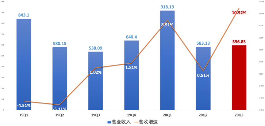 营收596.9亿美元,同比增长约11%