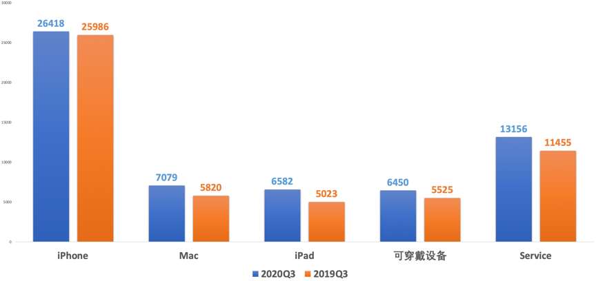 分产品来看,苹果的各项产品在营收贡献上均有所增长。