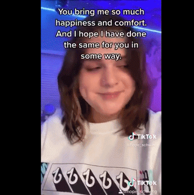 字幕上打出一行字,“尽管一开始我从来没有想到过会有人看我的视频,但是现在我和我的粉丝们在一起。TikTok已不仅仅是一个应用程序了,它是一个家庭。你们每个人的存在都改变了我的生活,让它变得更好”。