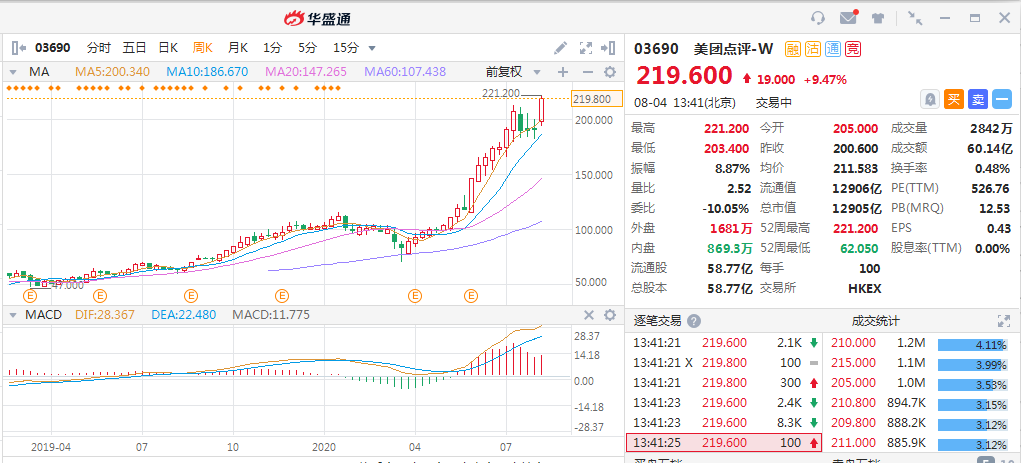美团点评午后涨幅扩大至9%,创上市以来新高,市值达1.29万亿港元。