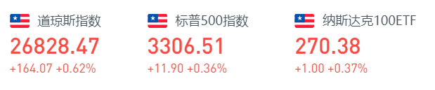 美股周二收高,纳指连续第五个交易日上涨,连续第二日创盘中与收盘纪录新高。截至收盘,道指涨164.07点,或0.62%,报26828.47点;纳指涨38.37点,或0.35%,报10941.17点;标普500指数涨11.90点,或0.36%,报3306.51点。