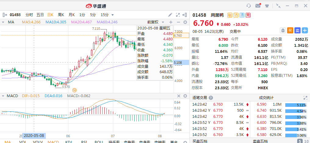 智通财经APP获悉,周黑鸭(01458)近日发盈警,中期业绩预盈转亏至4200万元-5000万元,但仍获中金上调目标价至6.5港元,并重申“跑赢大市”评级。