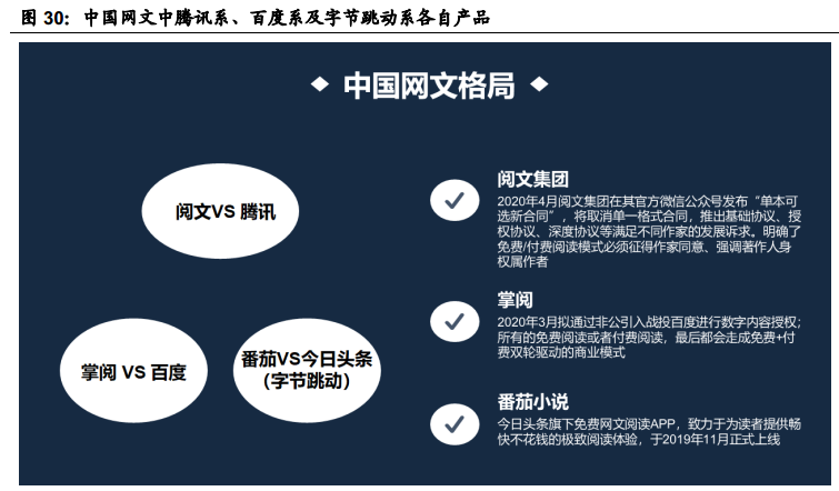 字节跳动流量变现板块之二是内容板块,字节跳动布局网文、游戏、MCN、电影等,阅读端, 2020年预计中国移动阅读市场206.3亿元(同比增加 14%),字节跳动从番茄小说到入股鼎甜文化,其在长视频赛道中逐步往上游IP渗透;