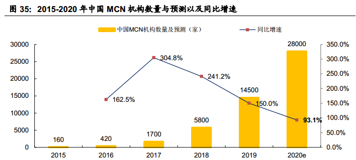 直播电商和短视频市场的兴旺催生了MCN(经纪)业务的红利期,预计2020年中国MCN市场规模将达到245亿元(同比增速45.8%),其竞争对手快手已布局广电MCN,字节跳动在该领域的布局预计也不会缺席。