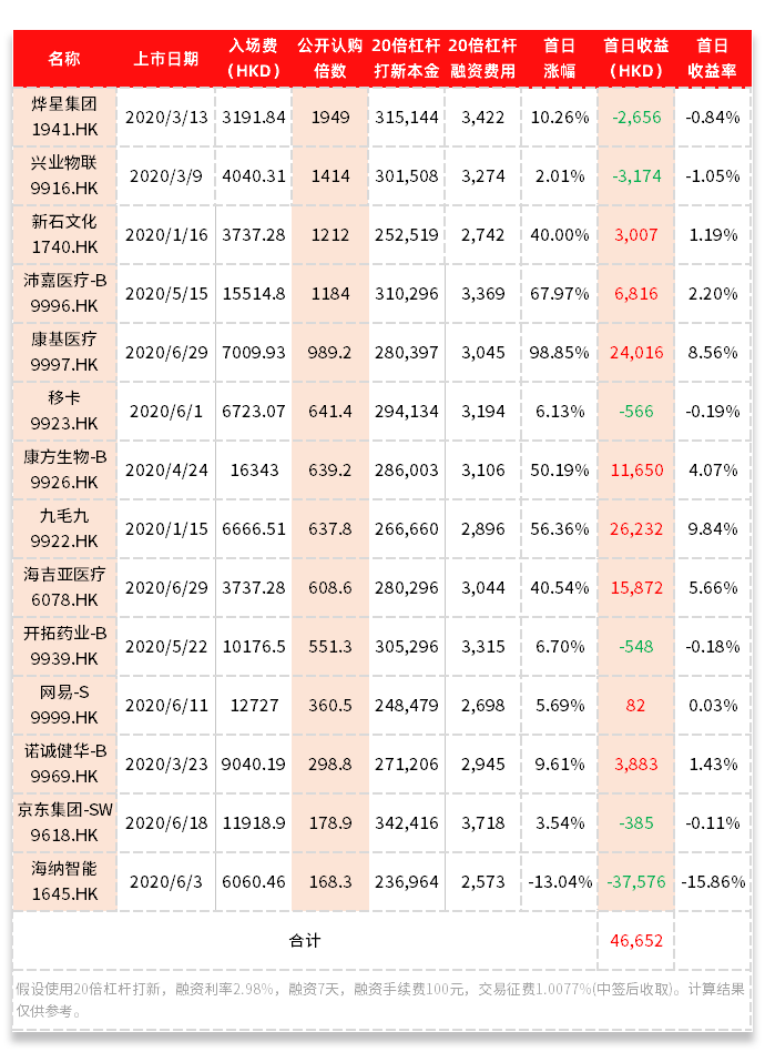 以上为2020年上半年认购倍数在150倍以上的14只新股,算是上半年认购最为热门头部新股。只有8只新股的乙头首日收益为正,让乙头亏损的新股多达6只。