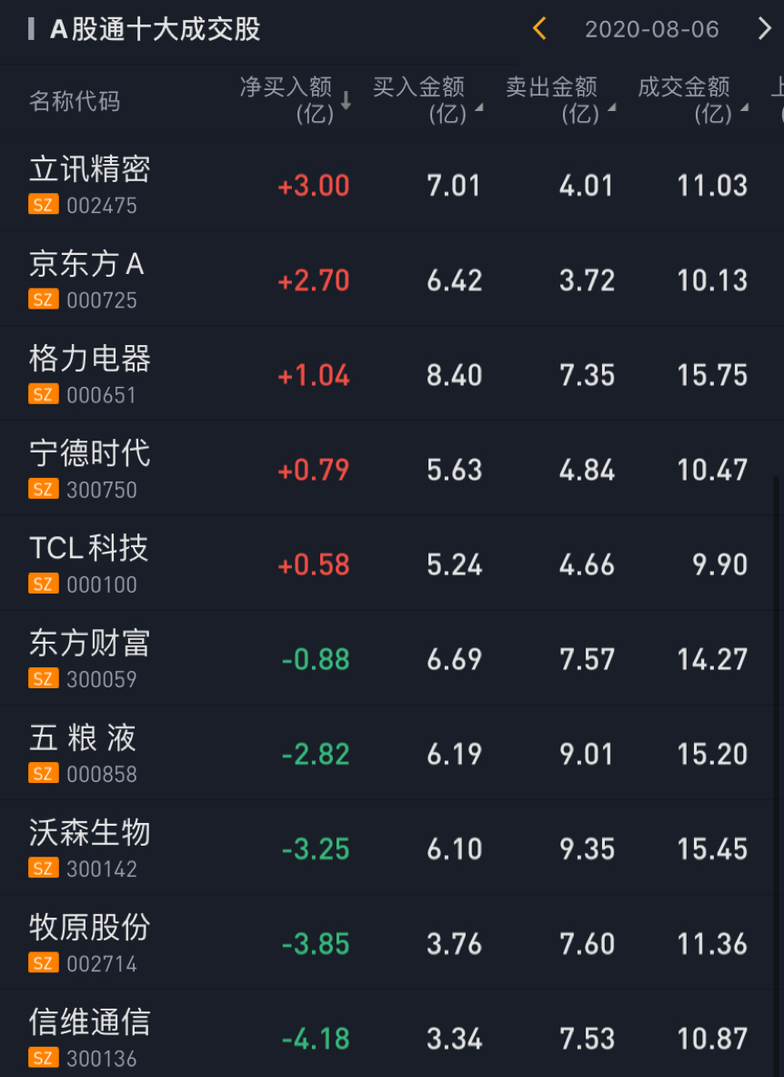 北上资金今日净买入立讯精密3亿元,净买入京东方A2.7亿元,净买入格力电器1.04亿元;净卖出信维通信4.18亿元,净卖出牧原股份3.85亿元。