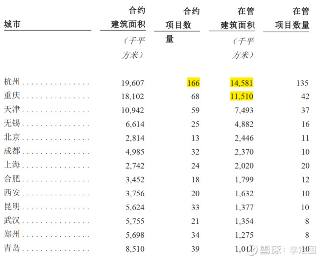 2、截止到20年5月8日,合约面积2.3亿方,在管635个物业,总计面积1亿方,合约面积/在管面积2.3,比例是目前已上市物业公司最高前三。如果包括土储锁定面积,总的潜在面积3.8亿平方,行业最高之一。