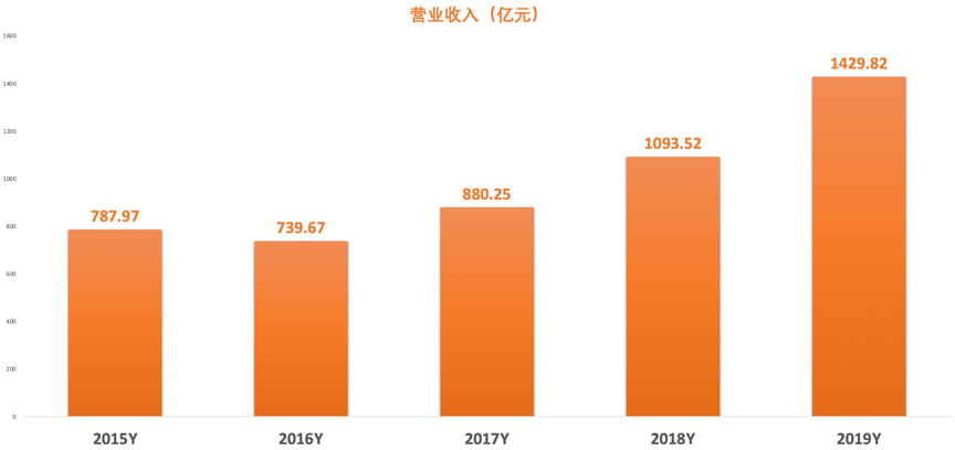 首先是营业收入,2015-2019年的5年间,复星国际营收从787亿元升至1429亿元,接近翻倍升幅。