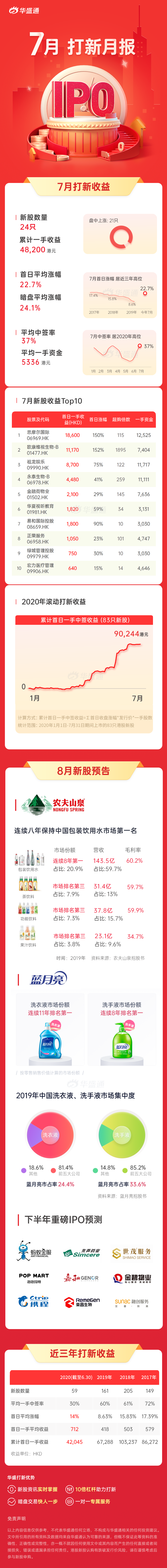 7月港股新股市场全面开花,上半年积攒的准新股一拥而上,乘上了牛市的风口。24只新股中多达21只首日大涨,各中1手综合收益高达4.82万港元,甚至超过整个上半年的收益。