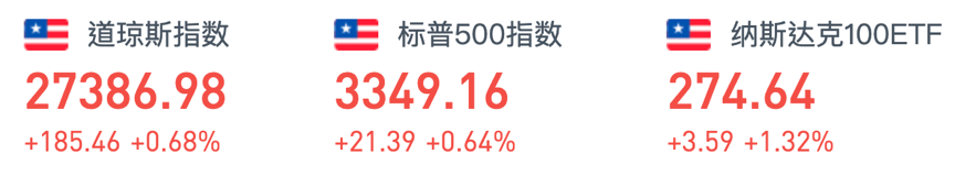 美国时间周四,美股低开高走,收盘全线上涨,纳斯达克指数首次收于11000点上方,投资者寄希望于美国新一轮财政刺激方案。道琼斯指数收于27386.98点,上涨185.46点,涨幅0.68%;标准普尔500指数收于3349.16点,上涨0.64%;纳斯达克综合指数收于11108.07点,上涨1.00%。
