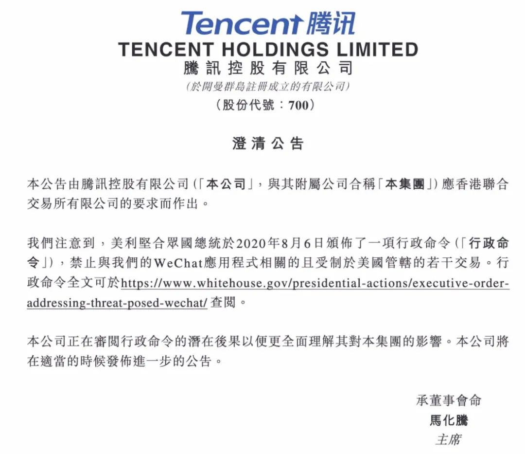 腾讯连夜公告:正在审阅美国总统行政命令的潜在后果