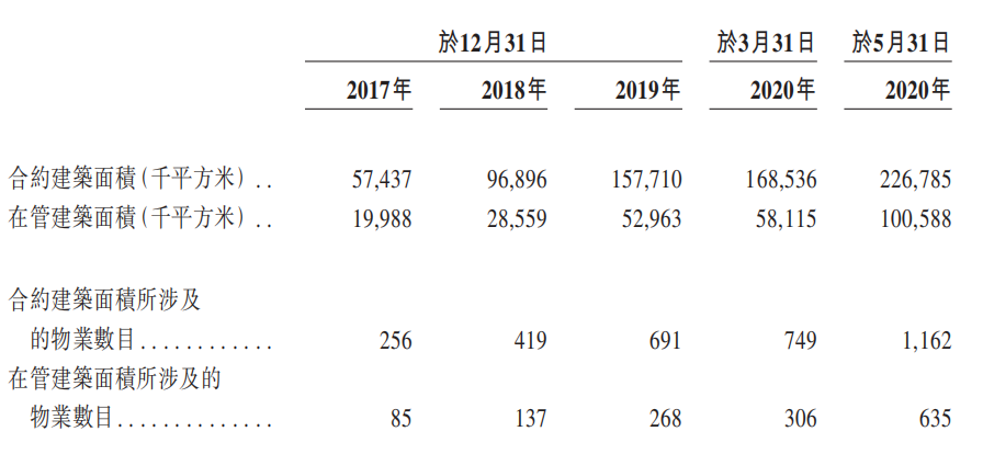 至2020年5月31日,融创服务的合约总建筑面积达226.8百万平方米,在管总建筑面积达100.6百万平方米。