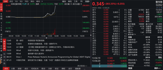 新浪港股讯 8月10日消息,香港国安法实施超过1个月,“东网”报道称,香港警方国安处今 (10日)早拘捕乱港分子、壹传媒黎智英、及其两儿子和多名壹传媒高层等7人,涉嫌勾结外国势力,违反香港国安法。壹传媒午后暴拉283%,市值净增近7亿港元,最新市值9.1亿港元,成交量到达4.1亿股。