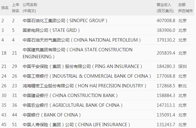 《财富》世界500强:129家中国公司上榜,首次超过美国