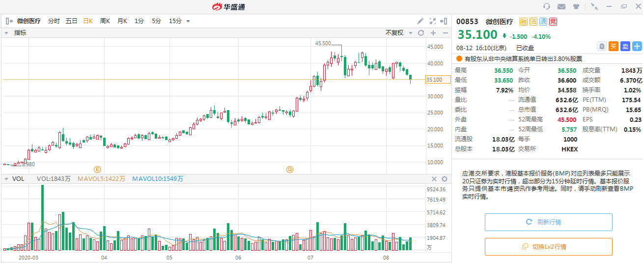 首先讲一只微创医疗,其2020年以来,截至8月12日收市股价最大涨幅高达448.7%,也就是在遭遇疫情情况下,这只股票仍然实现8个月暴涨近4.5倍的壮举!