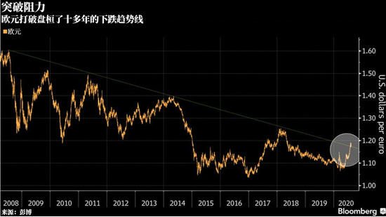 “欧元的上涨与今年或明年的经济增长无关,也与对周期的预测无关——它实际上更多地与结构性因素有关。欧盟就复苏基金达成的预算协议在很大程度上改变了金融市场对欧元区的看法,这大大巩固了欧盟和欧元的地位。”