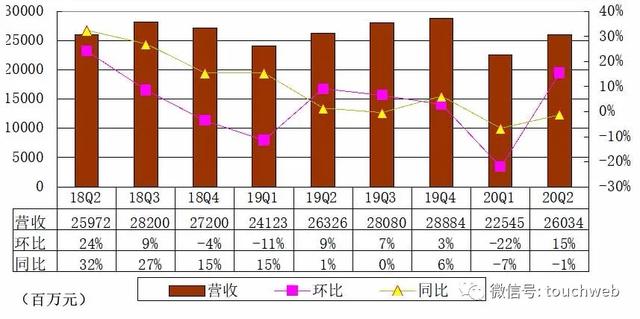 百度2020年第二季度营收为260亿元,较上年同期的263亿元下降1%,较上一季度的225亿元增长15%。