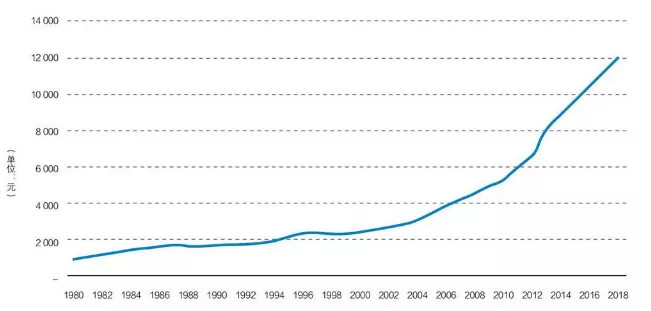 自此,我们见证了中国近40年的经济超高速增长。这40年的复合增长率平均约为9.4%。按实际价值计算,中国40年来国内生产总值翻了37倍。这个世界第一人口大国实现了超长时期内经济持续超高速的增长,这绝对是一个奇迹,是史无前例的。