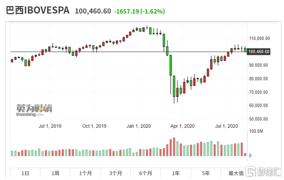 而巴西市场股指在三月份开始下坠之后,虽然近几个月已探底回升,但仍未恢复疫情前水平。