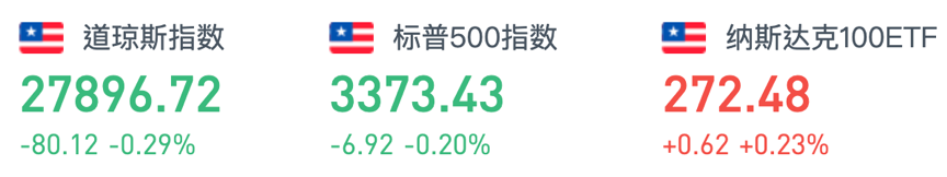美股周四收盘走势分化,道指跌超80点,标普也回吐此前涨幅收跌,苹果、特斯拉助纳指收涨0.27%,因美国上周首次申请失业救济人数远低于预期,但美国刺激计划僵局未破,仍令市场承压。截至收盘,道指跌80.12点,报27896.72点,跌幅为0.29%;纳指涨30.26点,报11042.50点,涨幅为0.27%;标普500指数跌6.92点,报3373.43点,跌幅为0.2%。