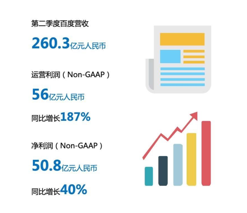8月14日,百度发布了截至2020年6月30日未经审计的第二季度财务报告。财报显示,2020年第二季度,百度实现营收260.3亿元,运营利润56亿元,同比增长187%,净利润50.8亿元,同比增长40%。营收、利润指标均超市场平均预期。