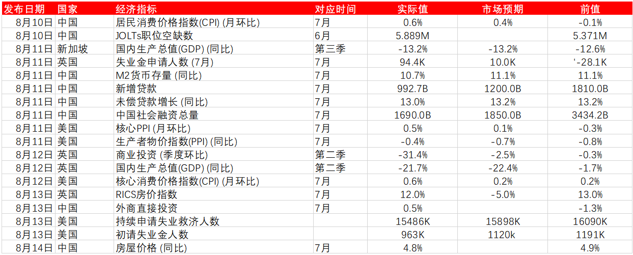 美股方面,道琼斯本周涨0.16%,报27931;纳斯达克本周跌0.01%,报11019;标普500本周涨0.01%,报3372。本周三大股指均录得涨幅。美国7月零售销售增幅低于市场预期。市场仍在权衡美国劳动力市场数据与财政刺激谈判僵局。