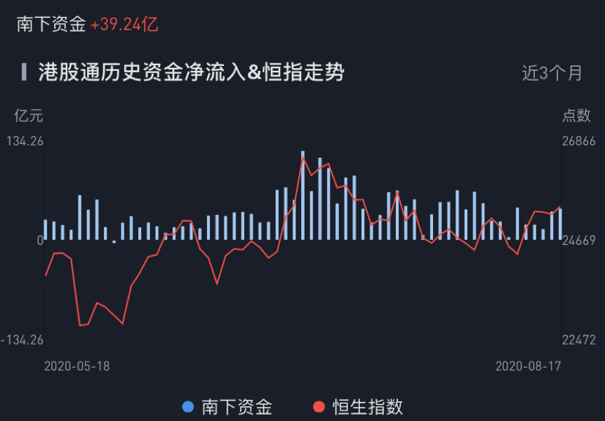 华盛资讯8月17日讯,南下资金今日净流入港股39.24亿港元,较上一交易日略有增长。