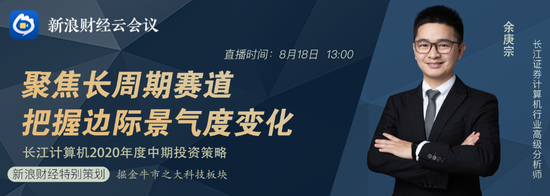长江证券计算机行业高级分析师余庚宗:聚焦长周期赛道,把握边际景气度变化—长江计算机2020年度中期投资策略